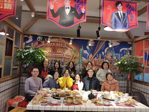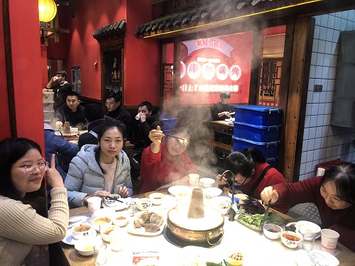 要问冬天和什么最配,那答案肯定是火锅了。这不,分析中心的小伙伴们在19号的工会活动日便结伴来到了老清泉火锅店,寒冷的冬日里吃一顿热气腾腾的火锅,把菜放进咕噜咕噜的锅里再裹上调好的酱汁,一口吃下去,暖心又暖胃。吃完火锅再看场电影,生活好不惬意。