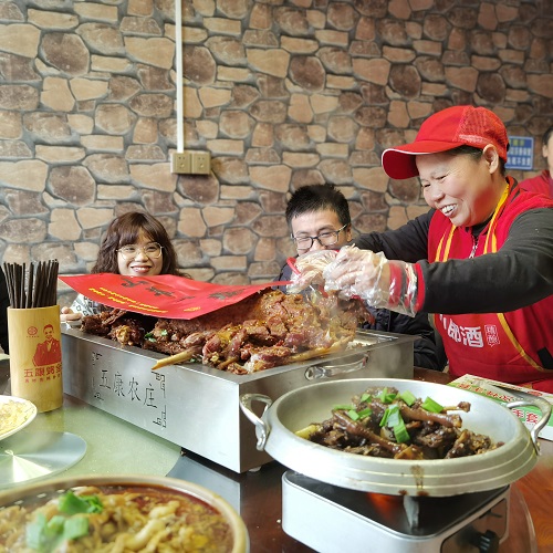 冬天除了火锅,烤全羊也是个不错的选择,当呼伦贝尔大草原羔羊遇上蒙古资深烤羊大厨,那扑面而来的焦香,让原本围坐在桌旁的商务部小伙伴们,纷纷站起身来大快朵颐,从酥皮、肉、羊排吃到羊腿,尽情享受食肉的乐趣。